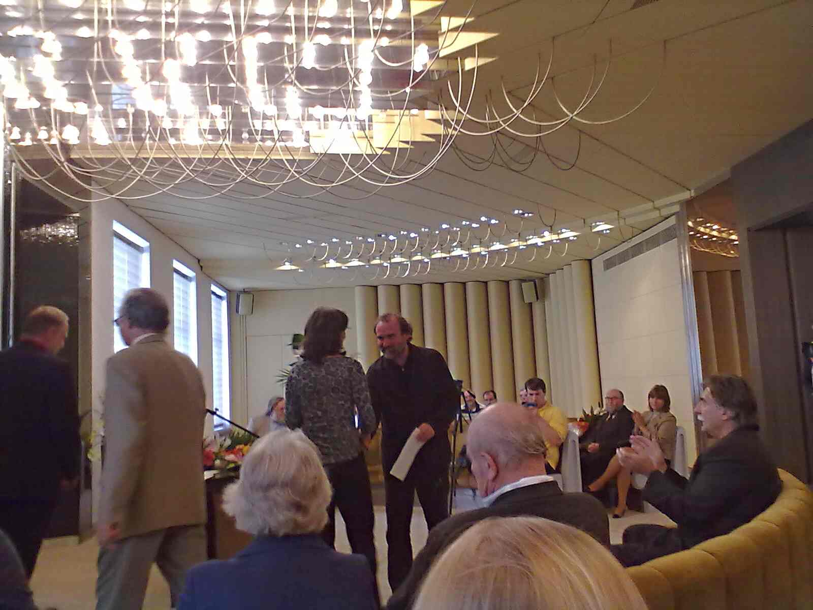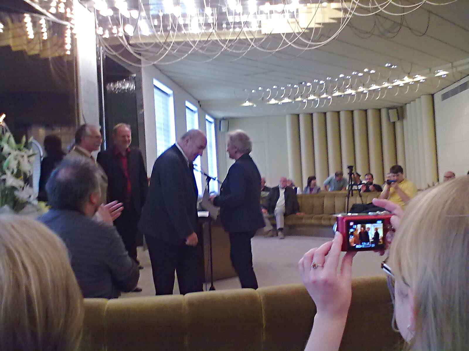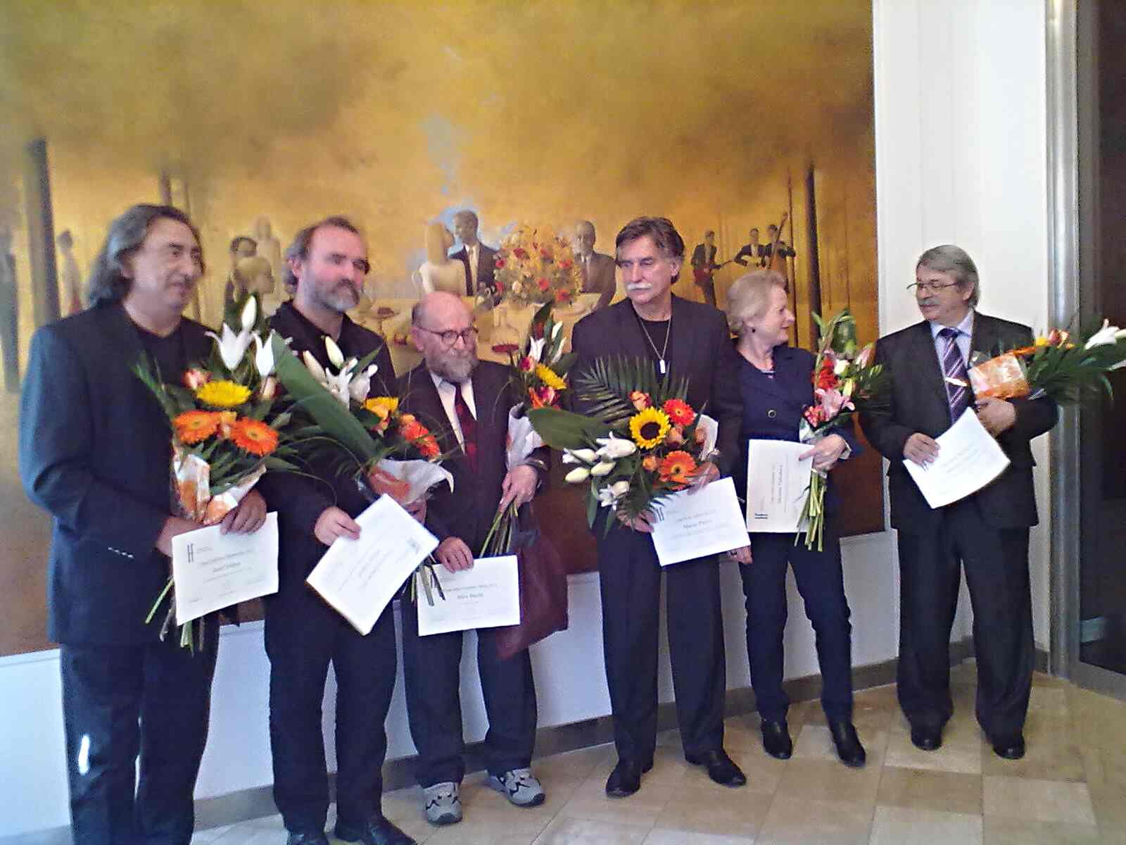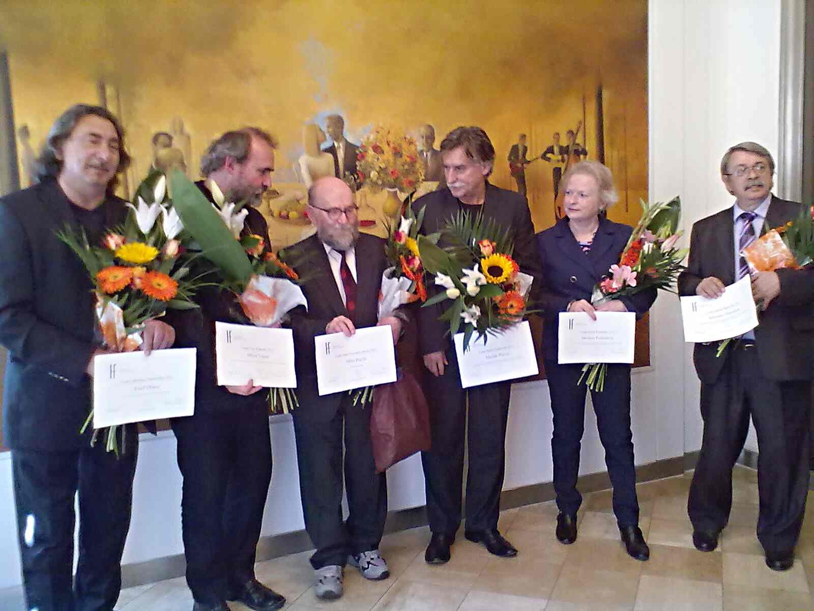 Po odovzdaní všetkých ocenení a gratuláciách sa prítomným prihovoril okrem predsedu rady prof. Bokesa aj súčasný riaditeľ hudobného fondu Mgr. Matúš Jakabčic, ktorý vyzdvihol najmä tú skutočnosť, že hudobný fond v súčasnosti ako jediný udeľuje každoročne ceny aj s finančným ohodnotením celkom v 6 žánroch hudby a interpretačného umenia a vyjadril nádej, že to aj pri stále nových a nových zmenách i zásahoch do poslania fondov tento trend zostane zachovaný pre podporu slovenskej hudobnej tvorby a interpretačného umenia. Potom vyzval zúčastnených k malému občerstveniu a ku gratuláciám a osobným rozhovorom s ocenenými a aj k ich spoločnej fotografii. My sme zostali s Milom ešte pár vzácnych chvíľ v rozhovore a podnetných nápadoch a potom sme sa rozišli každý po svojich povinnostiach.