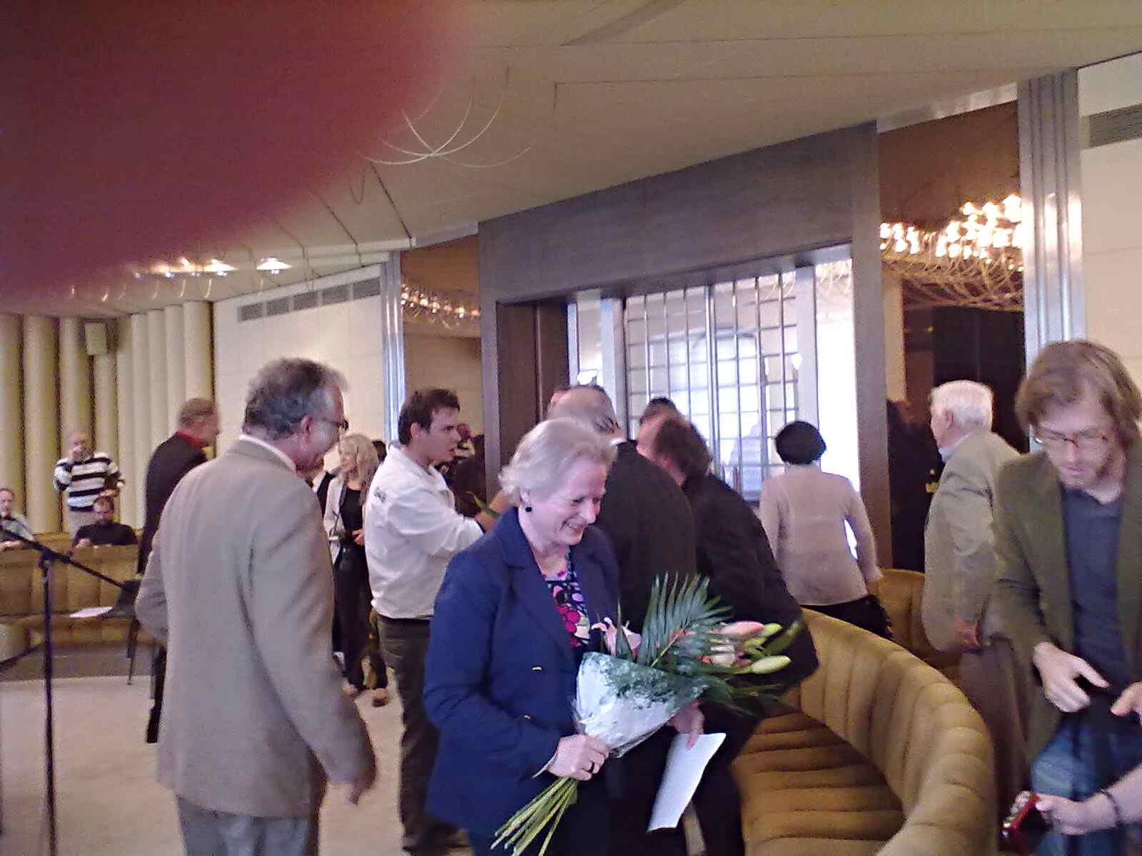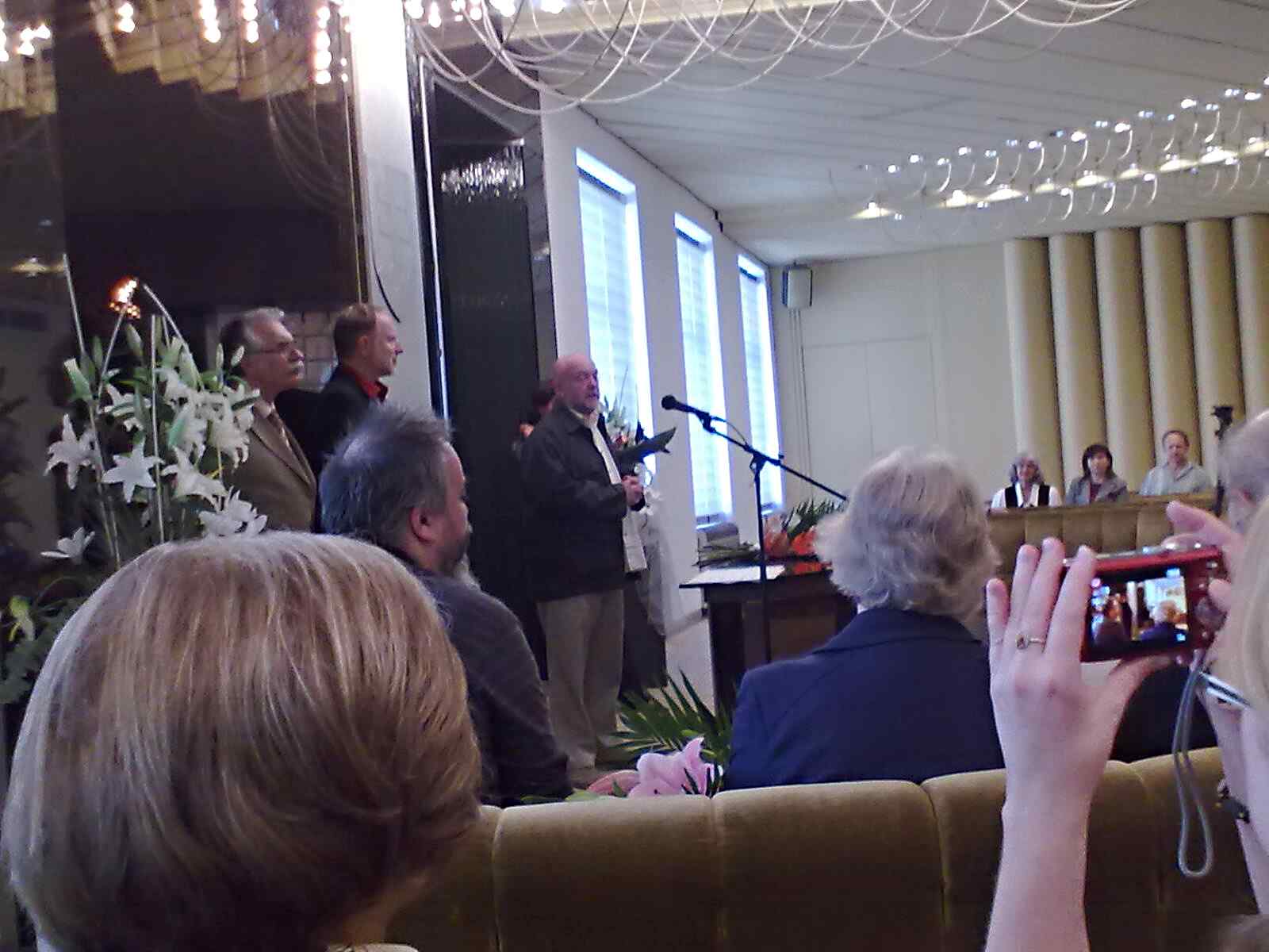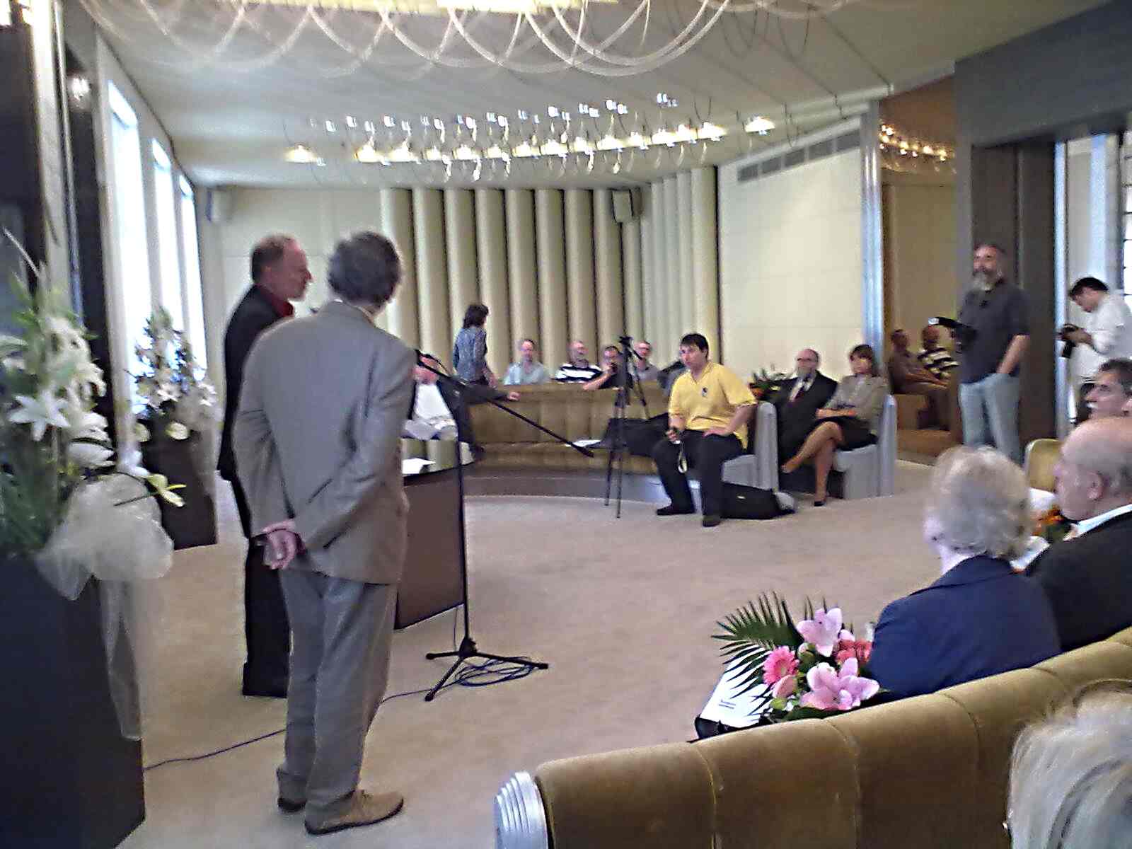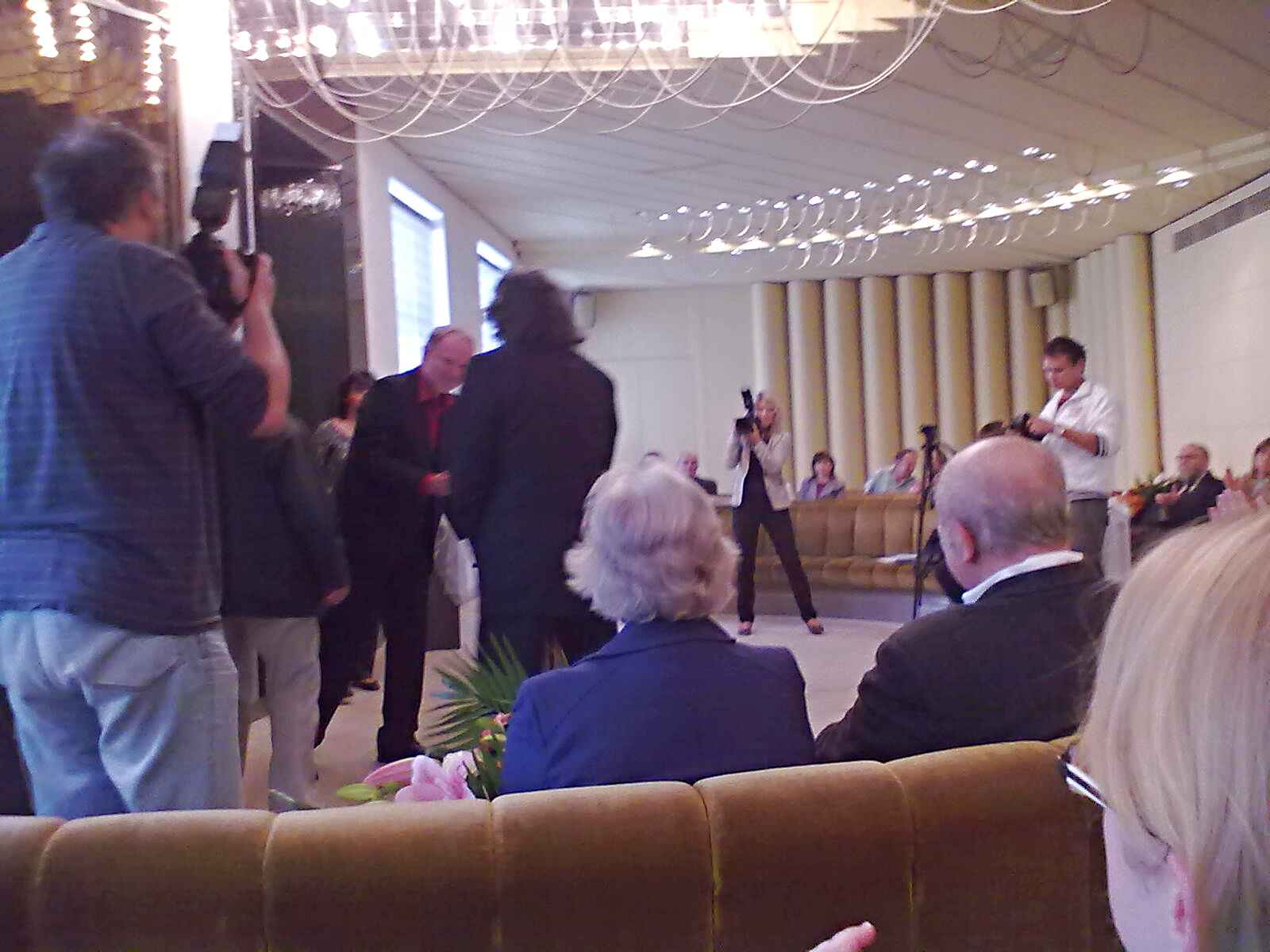 Po odovzdaní všetkých ocenení a gratuláciách sa prítomným prihovoril okrem predsedu rady prof. Bokesa aj súčasný riaditeľ hudobného fondu Mgr. Matúš Jakabčic, ktorý vyzdvihol najmä tú skutočnosť, že hudobný fond v súčasnosti ako jediný udeľuje každoročne ceny aj s finančným ohodnotením celkom v 6 žánroch hudby a interpretačného umenia a vyjadril nádej, že to aj pri stále nových a nových zmenách i zásahoch do poslania fondov tento trend zostane zachovaný pre podporu slovenskej hudobnej tvorby a interpretačného umenia. Potom vyzval zúčastnených k malému občerstveniu a ku gratuláciám a osobným rozhovorom s ocenenými a aj k ich spoločnej fotografii. My sme zostali s Milom ešte pár vzácnych chvíľ v rozhovore a podnetných nápadoch a potom sme sa rozišli každý po svojich povinnostiach.