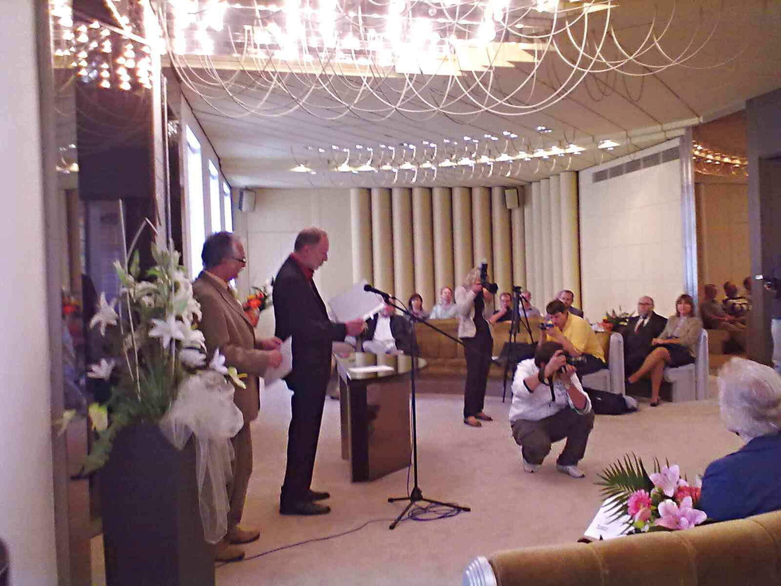 Pozvánka, ktorá oznamovala vykonanie tohto slávnostného aktu prišla na ZDHS mailom i písomne. 26. september pripadol na stredu a odpoludnia a tak to obohacovalo aj tak moju nutnú i zamýšľanú cestu do Bratislavy, vybavenie všetkých nahromadených povinností a návšteva kapelníka DH Veselá Muzika v Stupave na prípravu projektu CD a inštaláciou notového programu Capella a inštruktáž s prácou. Spojil som sa však aj s čestným predsedom ZDHS p. Adamom Hudecom, aby sme sa zúčastnili tohto aktu spolu, aj ako členovia predstavenstva aj ako tiež v minulosti touto cenou HF ocenení. Všetko zamýšľané sa podarilo ako bolo plánované a tak som 13,30 bol ako jeden z prvých účastníkov v Zichyho paláci v Bratislave. Odovzdávanie ocenení bolo nzahájené skoro presne v stanovenú hodinu a prebiehalo dôstojným spôsobom. Celý akt zahájil predseda rady hudobného fondu prof. Vladimír Bokes svojim príhovorom a odovzdaním prvého ocenenia v podobe ceny Jána Levoslava Bellu hudobnému skladateľovi Mirovi Bázlikovi za celoživotné dielo.