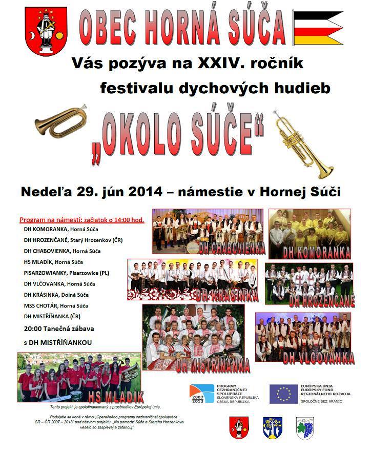 Obec Horná Súča Vás 29. júna 2014 srdečne pozýva na XXIV. ročník festivalu Dychových hudieb.