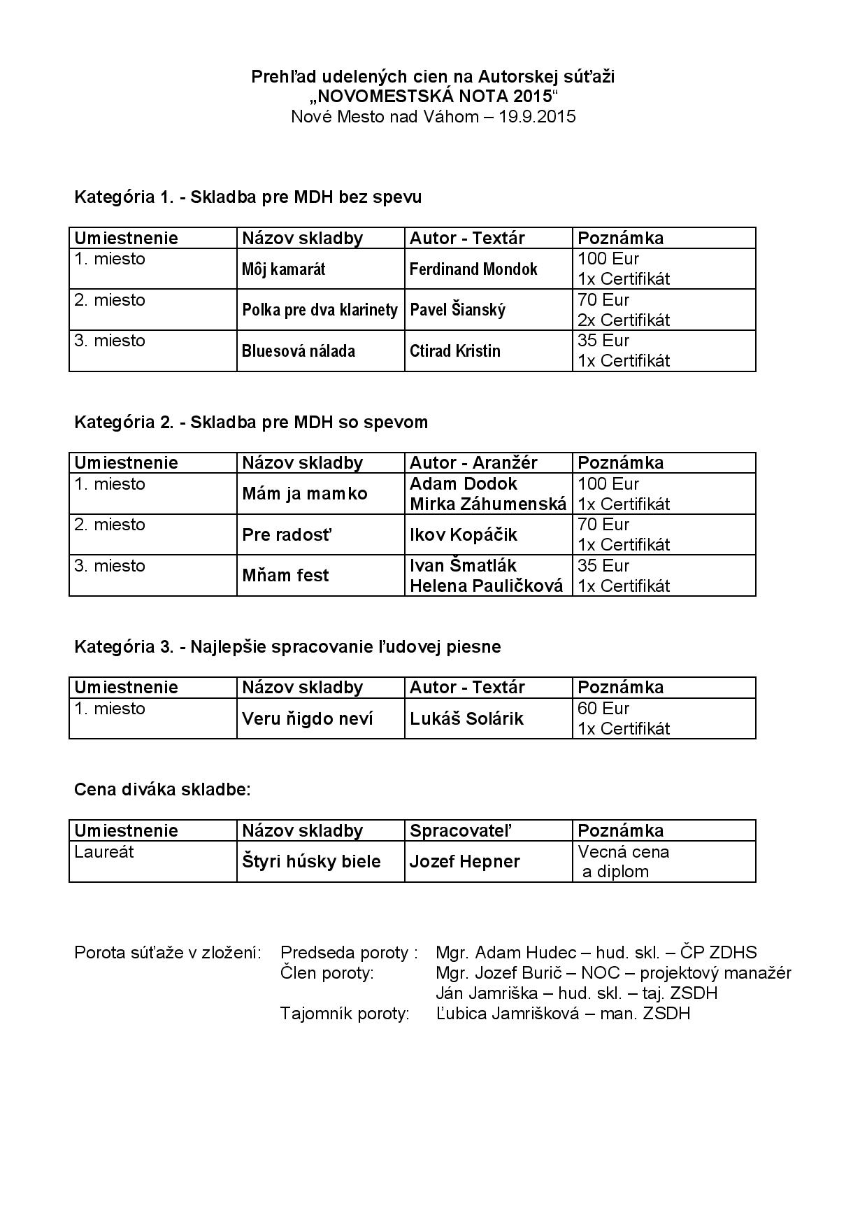 Po odohraní všetkých súťažných skladieb ešte pokračoval na javisku Spojený orchester, kým porotcovia spoločnou konverzáciou dospeli k výsledkom tejto súťaže. Porada netrvala dlho a kým zazneli posledné tóny spojeného orchestra, už pod pódiom stáli s diplomami a cenami pre výhercov. Výsledky tejto súťaže si môžete pozrieť TU.