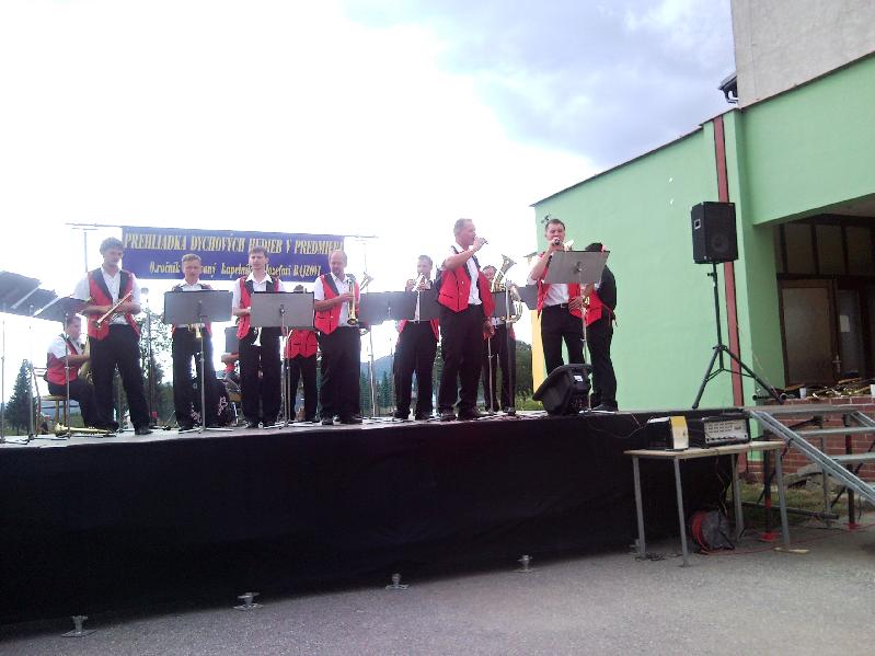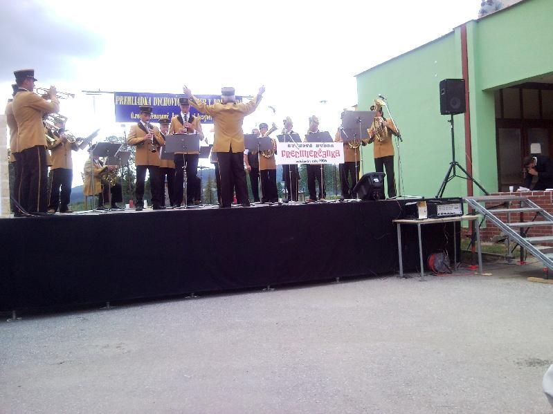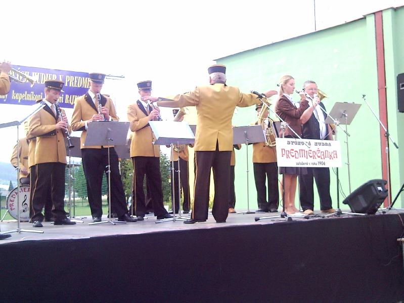 Je poobedie 6. septembra 2009 a prichádzam spoločne s dychovou hudbou Lieskovankou na avizovanú prehliadku dychových hudieb do Predmiera. Počasie sa zdá byť stabilné a tak sa akcia koná na priestranstve pred športovou halou, ktorá bola pripravená na mokrý variant. Predmierčanka, ktorá je hlavným organizátorom tohto podujatia je pripravená vystúpiť ako prvá a to vo svojich známych uniformách, ktoré získali dávnejšie prostredníctvom Paula a Marty van Ooijen zo Švajčiarska. V súčasnosti sa chystajú odviezť si ďalšiu sadu novších uniforiem, ktoré sú už skoro kompletne pripravené pre nich, ako sme písali dávnejšie. Premyslene pripravená akcia, je venovaná dlhoročnému kapelníkovi, a hráčovi pánu Jozefovi Bajzovi, obetavému človeku, ktorý má najväčšie zásluhy, že dychová hudba v Predmieri existuje dodnes a stále sa rozvíja. Prehliadku teda zahajuje Predmierčanka, ktorá predvádza svoj naštudovaný repertoár. Po nej vystúpi Dh Hoľazňanka z Plevníka, ktorá svoj názov odvodila podľa neďalekého vrchu Hoľazne a záver pred spoločným vystúpením obstarala DH Lieskovanka z Horného Lieskova, ktorá sa v tomto roku zúčastnila aj celoštátnej súťažnej prehliadky v Lednických Rovniach a získala zlaté pásmo. obecenstvo je s výkonmi jednotlivých účastníkov spokojné a dáva to patrične najavo aj svojim potleskom. Po záverečných spoločne zahraných pochodoch, po krátkej prestávke hrá samozrejme ešte domáca Predmierčanka do tanca i na počúvanie. Podujatie sa vydarilo a bude mať v budúcnosti pokračovanie, ako mi vravia obaja Bajzovci - otec so synom, ktorý vlastne spoločne s kapelou všetko zabezpečovali aj s pomocou slušnej riadky sponzorov, ktorí pomohli úrovni podujatia. Bol som rád, že som mohol byť pri štarte nového podujatia, ktoré sa chystá mať pokračovanie a tým aj rozšíri počet podujatí s dychovou hudbou na Slovensku, ktoré sú veľmi potrebné pre propagáciu a udržanie tradícií tohto žánra. Poďakovanie patrí všetkým zúčastneným, ale najmä Predmierčanke, ktorá sa bude určite dlhé roky tešiť, že bola iniciátorom takéhoto festivalu dychovej hudby vo svojej obci, ktoré bude aj zviditeľnením jej práce pre dychovú hudbu na Slovensku. Vďaka a tešíme sa o rok na pokračovanie a peknú nedeľu. (Ján Jamriška - ZDHS)