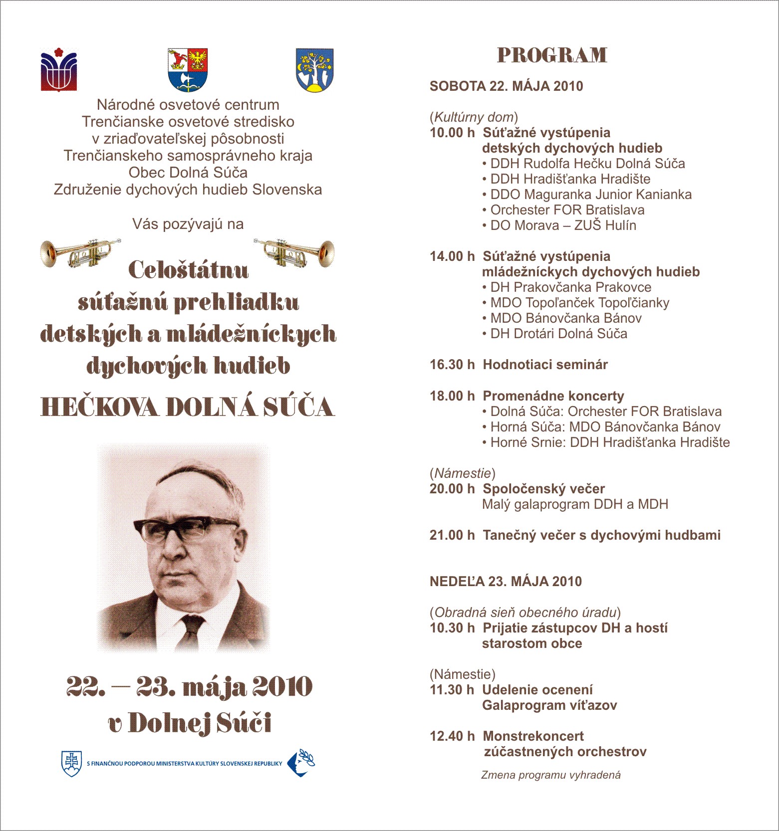 Celoštátna súťaž a prehliadka detských a mládežníckych dychových hudieb "Hečkova Súča 2010"