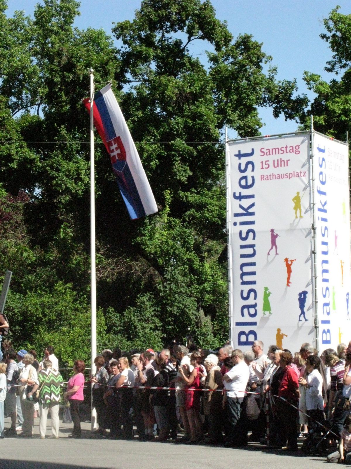 Hlavný program blasmusikfestu bol na pláne v sobotu 5. júna. Dopoludnia mali jednotlivé súbory koncerty po Viedni. Bánovčanka koncertovala na dvorene zámku Schönbrunn. Tu spoločne s mažoretkami zaujala všetkých turistov, ktorí okrem krásy záhrad mohli v danú chvíľu obdivovať i nádherné slovenské dievčatá a ich um a dokonalé ovládanie paličky. Choreografie mažoretiek na hudbu vylúdenú z nástrojov našej kapely nenechali nikoho chladného a najmä nie fotoaparáty všetkých prítomných okoloidúcich. Záver dopoludňajšieho koncertu patril všetkým trom kapelám, ktoré boli prítomné na nádvorí.