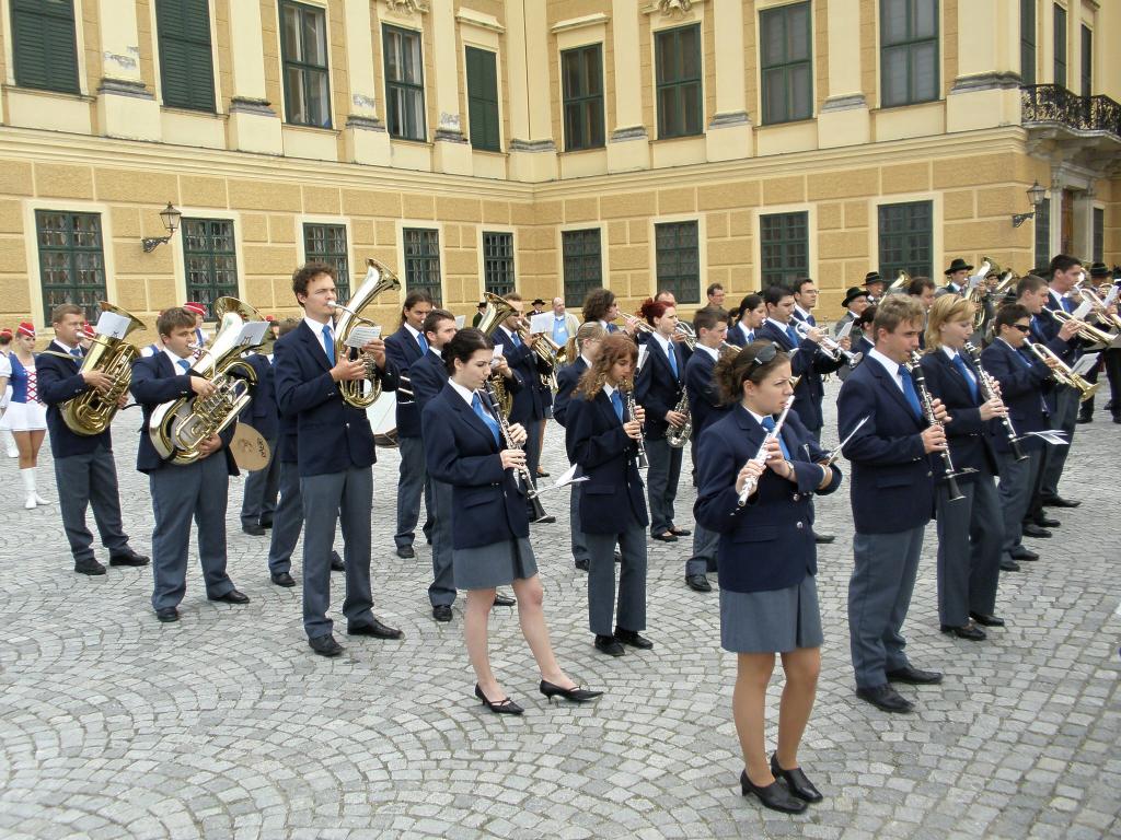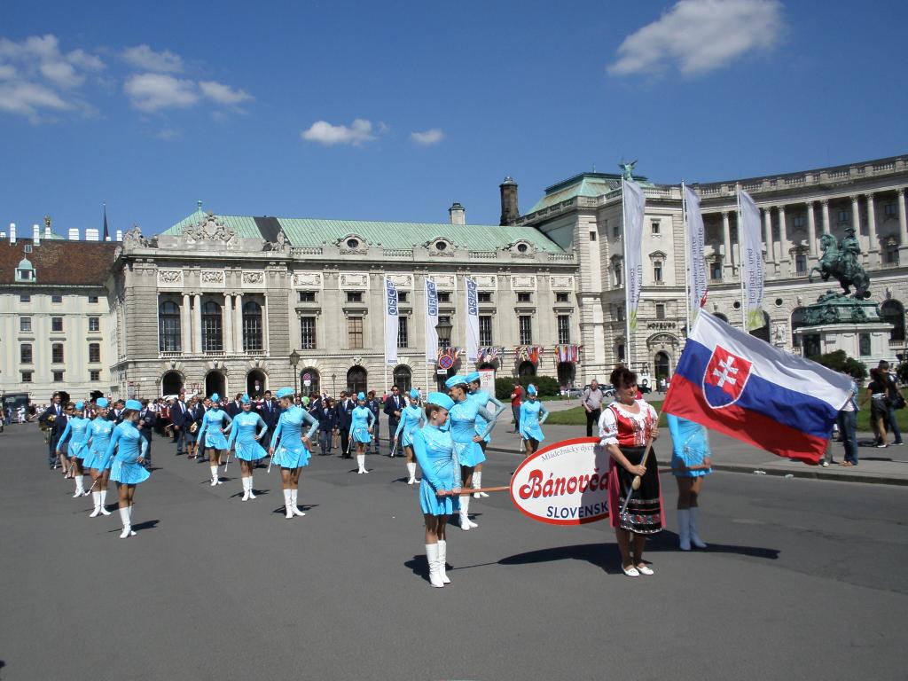 Reprezentácia Slovenska vo Viedni týmito súbormi začala v piatok 4.6.2010. Ranná cesta viedla z Bánova do Devínskej Novej Vsi. Tu sa k Bánovčanke pridala Tina a mohlo sa vyraziť. Pred samotným odchodom bola ešte krátka skúška a zosynchronizovanie choreografie a mohlo sa pokračovať v ceste do hlavného mesta Rakúska. Prvá zastávka súborov bola v prekrásnych záhradách v Schönbrunne, ktoré preslávil známy film o cisárovnej Sisi. Tu sa konala skúška na záverečný koncert všetkých zúčastnených orchestrov. Asi dvojhodinová skúška preverila prvýkrát všetky zúčastnené orchestre. Pre rakúske kapely potom nasledovala súťaž v pochodovaní. Všetky tieto postupne pochodovali nádvorím Schönbrunnu a ich výkony si podrobne všímala prítomná porota.