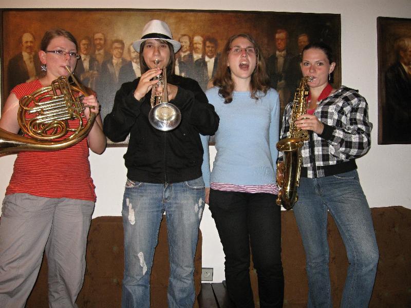 V ďalších dňoch sme už pokračovali v plnom nasadení. Pracovali sme aj individuálne po sekciách, kde sme si mohli navzájom vymeniť svoje zručnosti a schopnosti v hre na jednotlivé dychové nástroje, popracovať s výrazom, prejavom, zosúladením, a takto načerpať nové skúsenosti a obohatiť svoje schopnosti. No a aký by to bol orchester bez speváčok? Tohto ročníka sa zúčastnili dve mladé, šarmantné speváčky Janka a Gabika, s ktorými sme spoločne, ako jeden veľký orchester, nacvičovali hudobný program, ktorý uvedieme počas nášho druhého stretnutia v podobe koncertíkov po okolí a na celoslovenskom Dychfeste vo Vištuku.