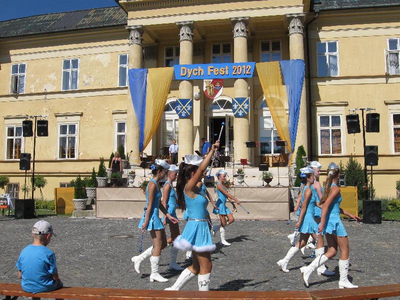 Popoludní sa stretli DH Považská Veselka, Lapášanka a Karpatská kapela pred obecným úradom, aby spoločne zahájili slávnostný pochod do kaštieľa, na čele s mažoretkami z Hlohovca. Po príchode na nádvorie, krátkych uvítacích ceremoniáloch a zahájení druhého dňa Dychfestu na pódiu ako prvá vystúpila ženská spevácka skupina „Dolnokrupanka“, ktorú vedie pán Alojz Konečný.