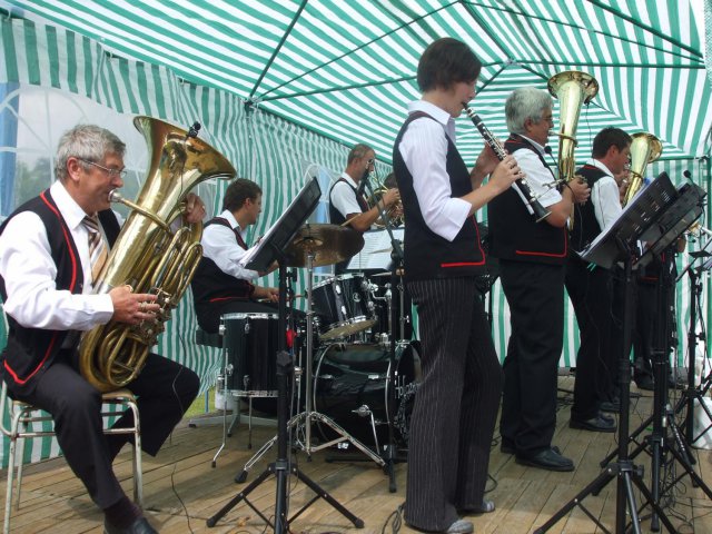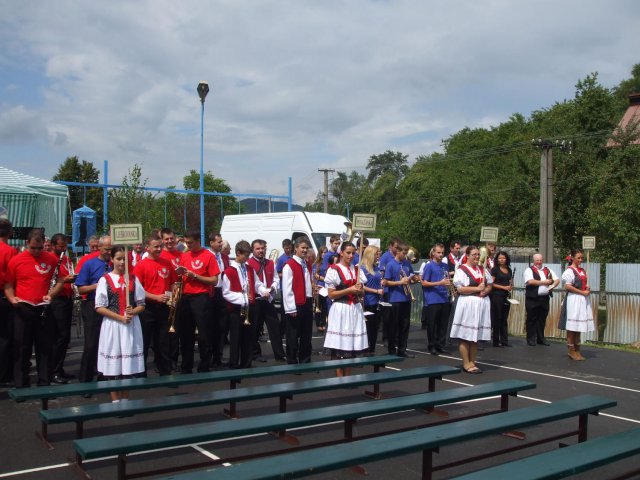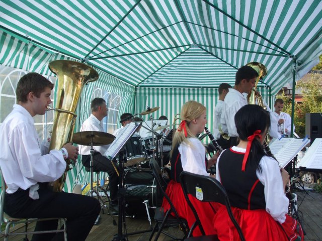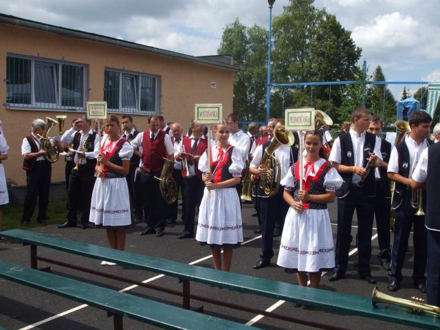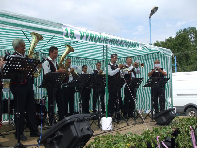 PLEVNÍK-DRIENOVÉ. Oslavy 15. výročia dychovej hudby Hoľazňanka a hody v obci začali slávnostnou svätou omšou. Pokračovali potom sprievodom účinkujúcich do športového areálu. Na oslavách sa zúčastnilo sedem ďalších dychových súborov. Nechýbalo vystúpenie mažoretiek, ktoré už akosi k dychovkám patrí. Vystupovali aj deti z folklórneho súboru Dúbravček a ľudová hudba Dúbravienka z Plevníka-Drienového.